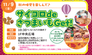 おいもサイコロが登場!出た目のさつまいもを1本プレゼント♪ (参加方法)当日の館内ご利用レシート税込合計1,000円分のご提示でご参加いただけます。※さつまいもがなくなり次第終了/お1人様1回限り/年齢制限なし※複数人で […]