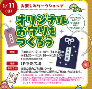 オリジナルのお守りがつくれるよ!可愛くデコっちゃおう♪ (参加方法)当日の館内ご利用レシート税込合計1,000円分のご提示でご参加いただけます。※各回10名様/お1人様1回限り/年齢制限なし※複数人でご参加の場合は1,0 […]