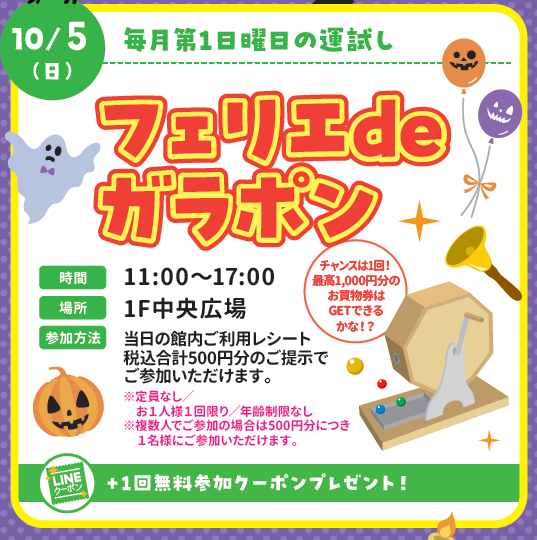 当日の館内ご利用レシート税込合計500円分のご提示でご参加いただけます。