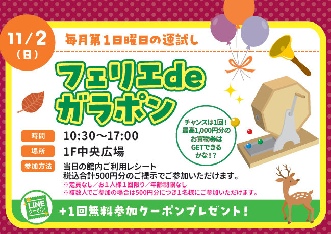 当日の館内ご利用レシート税込合計500円分のご提示でご参加いただけます。