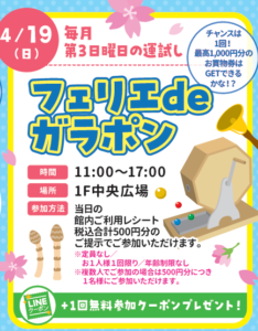 ●ガチャ牧場【スマホ リペア プラス】…継続開催中! ●整体体験イベント【Re:LABO】…4/1(水)・8(水)●携帯・ウォーターサーバーPRイベント【㈱ネクサスリープ】…4/2(木)~4(土)●整体体験イベント【Re […]